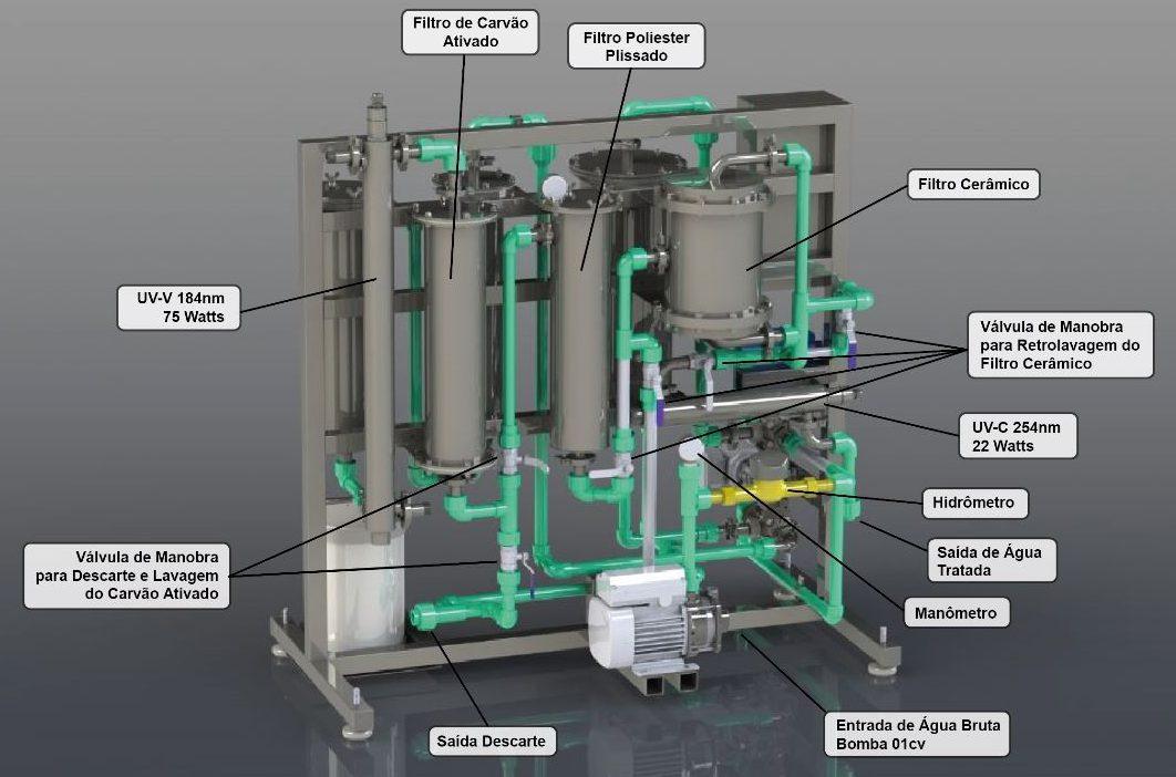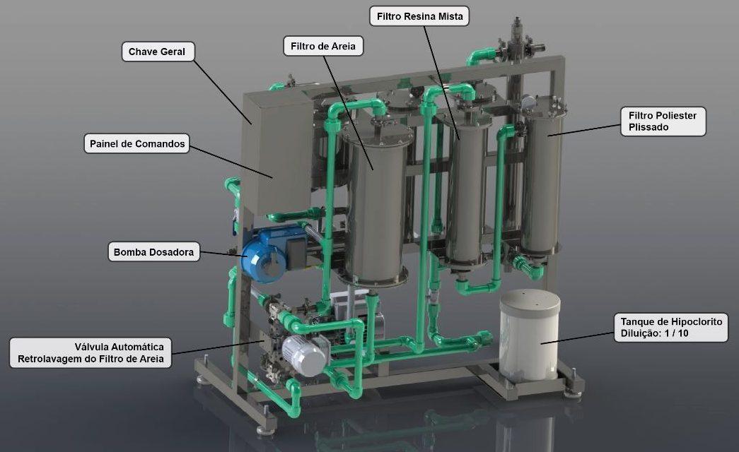 Por exemplo: para água de poço, será feita uma avaliação dos minerais presentes na água antes da fabricação do equipamento. Para água da chuva, serão retiradas as toxicidades e será feita a filtração, esterilização e clarificação da água para torná-la pura.